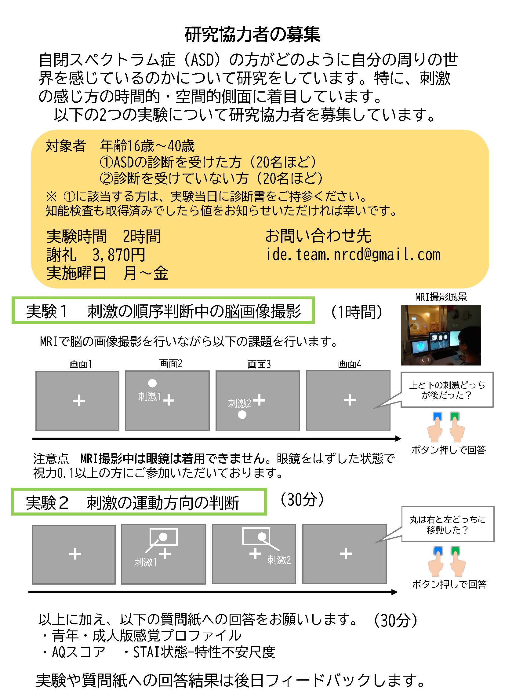 現在、視覚の処理に関する実験の参加者を募集しています。